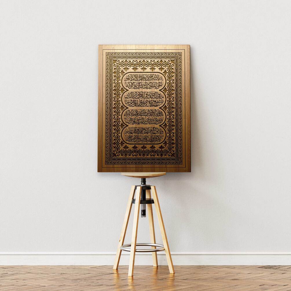 A distinctive and original interpretation of Ayatul Kursi, blending classical calligraphic grace with modern production precision.