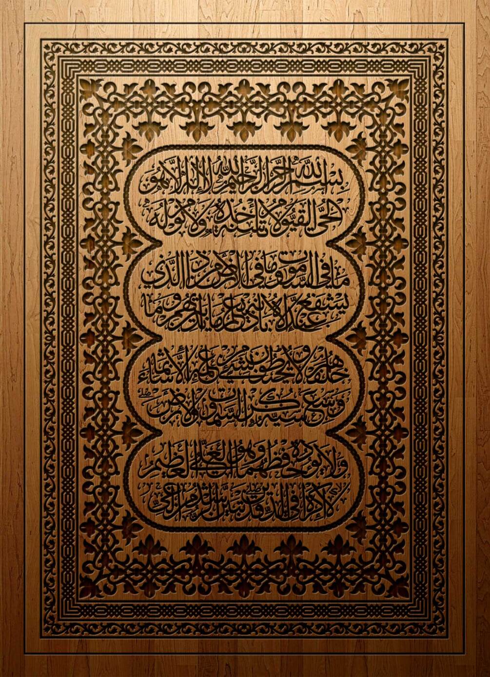 Ayatul Kursi Thuluth Calligraphy – Floral & Geometric Frame Vector Design for CNC, Laser Engraving & Digital Art