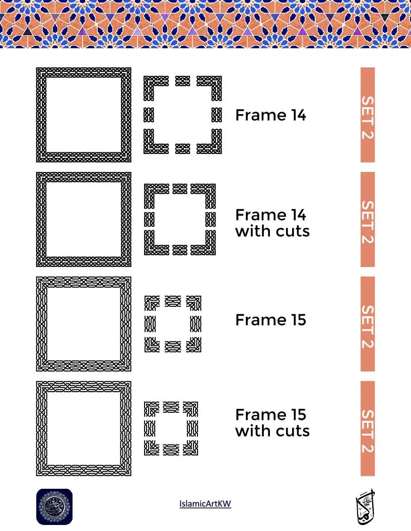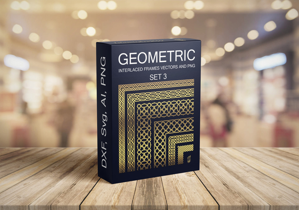 Geometric Interlaced Frames set 3, Islamic frames and borders vectors, Dxf, Svg, Ai and Png, for digital art, CNC cutting and wood engraving
