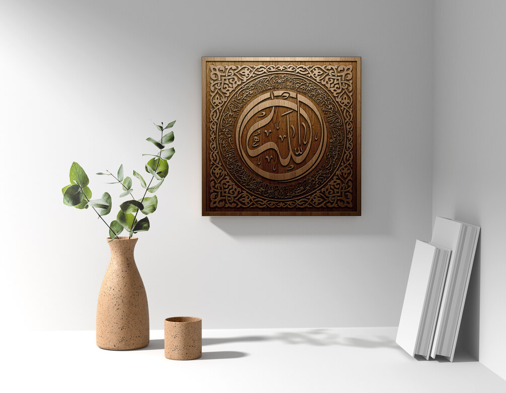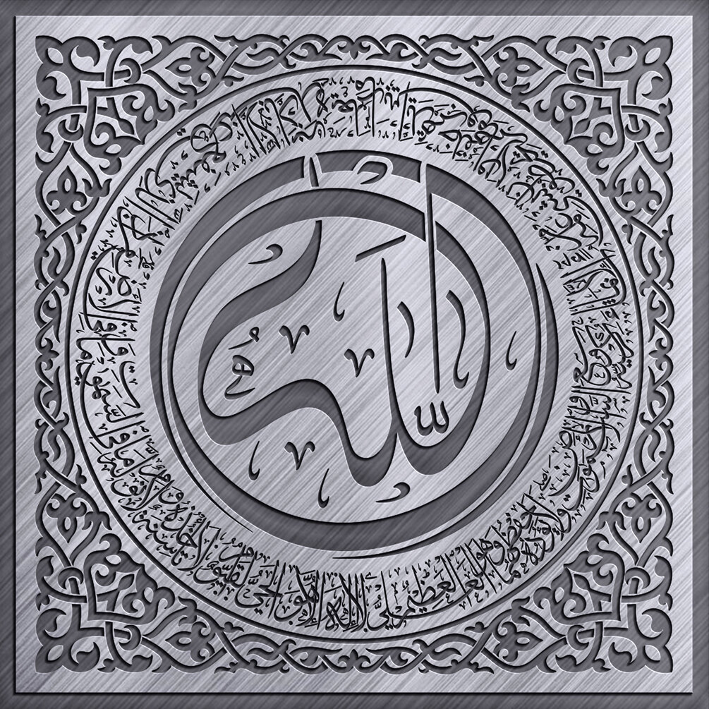 Available in inverted and non-inverted variants across multiple formats — SVG, DXF, AI, PDF, PNG, and JPEG. A unique and original interpretation of Ayatul Kursi, crafted for both aesthetic and functional perfection. The artwork contains inverted and non-inverted SVG and DXF files which are adapted for machine engraving and wood burning, using laser or CNC machines, and high-resolution PDF, PNG and JPEG for printing.