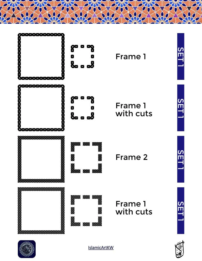 Geometric Interlaced Frames set 1, Islamic frames and borders vectors, Dxf, Svg, Ai and Png, for digital art, CNC cutting and wood engraving